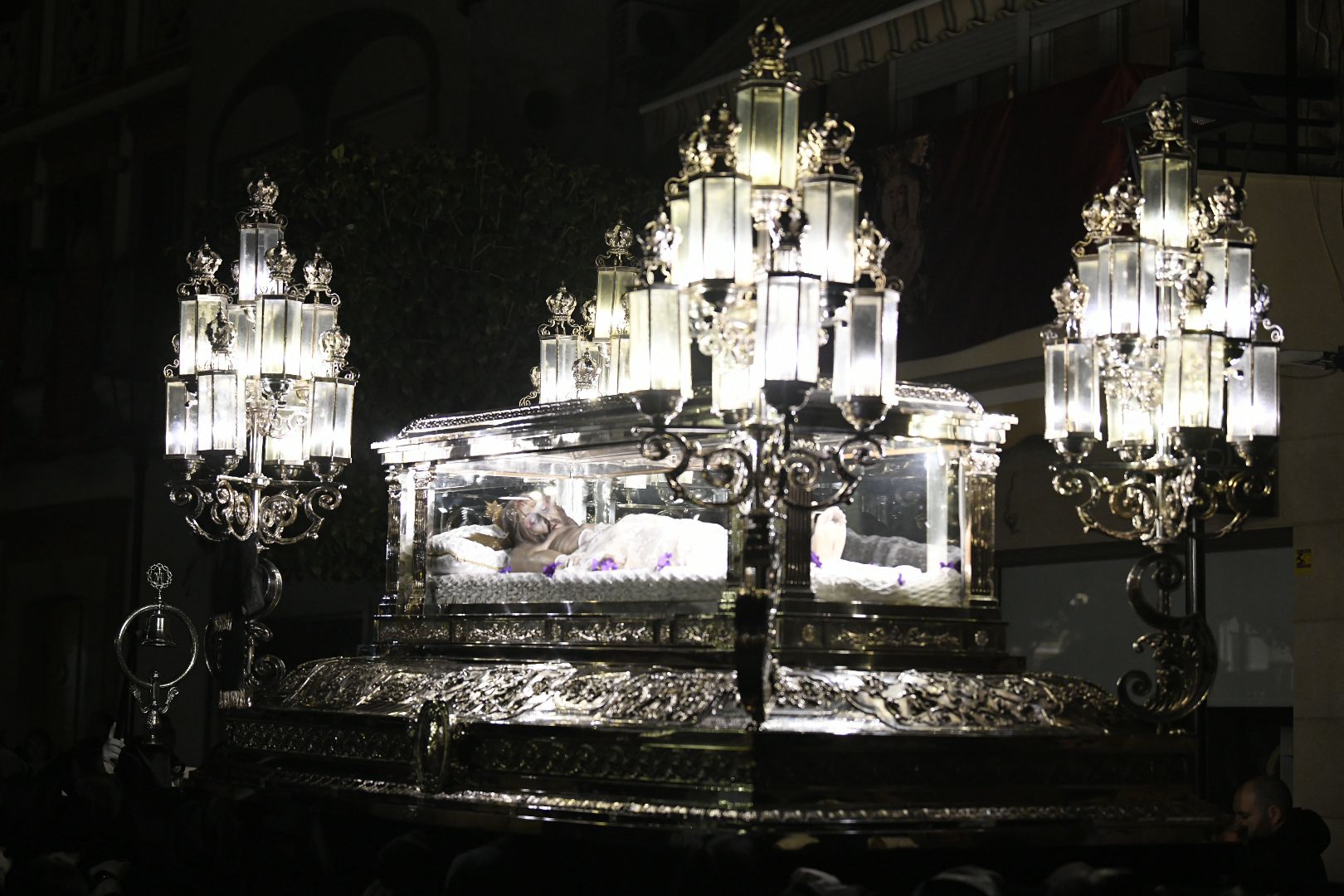 La noche de Viernes Santo comenzó con la solemne salida del Santo Entierro, en una plaza de Santa Ana abarrotada que agigantaba el silencio. El Santo Entierro caminó por Villanueva y regresó con paso elegante y sutil a Santa Ana para un encuentro histórico y muy esperado con su madre, la Virgen de los Dolores. Volvió a la guarda de Santa Ana en la noche callada.
